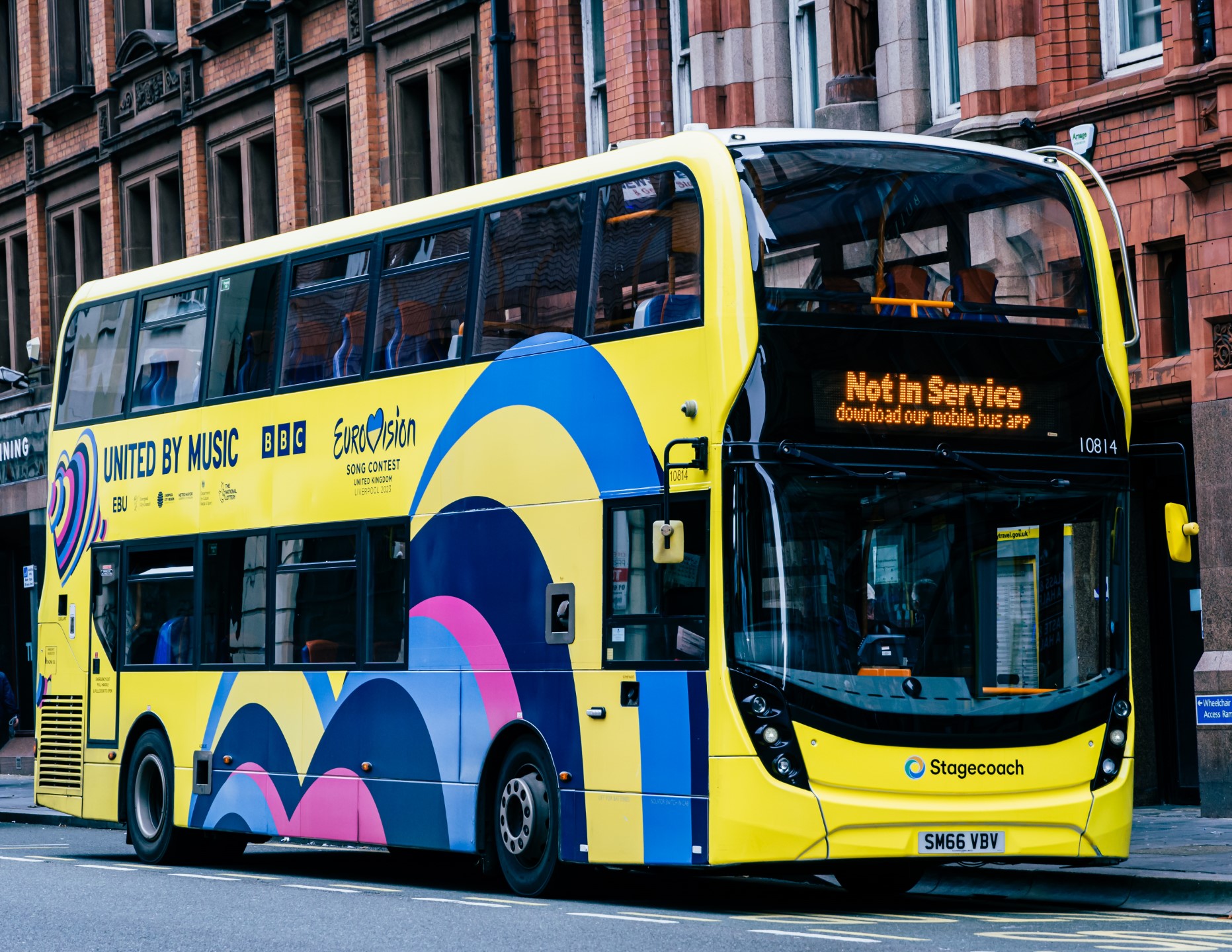 - Last year Liverpool hosted the Eurovision on behalf of Ukraine. A number of buses had this promotional livery applied to promote the competition. Sweden had won the competition that year.