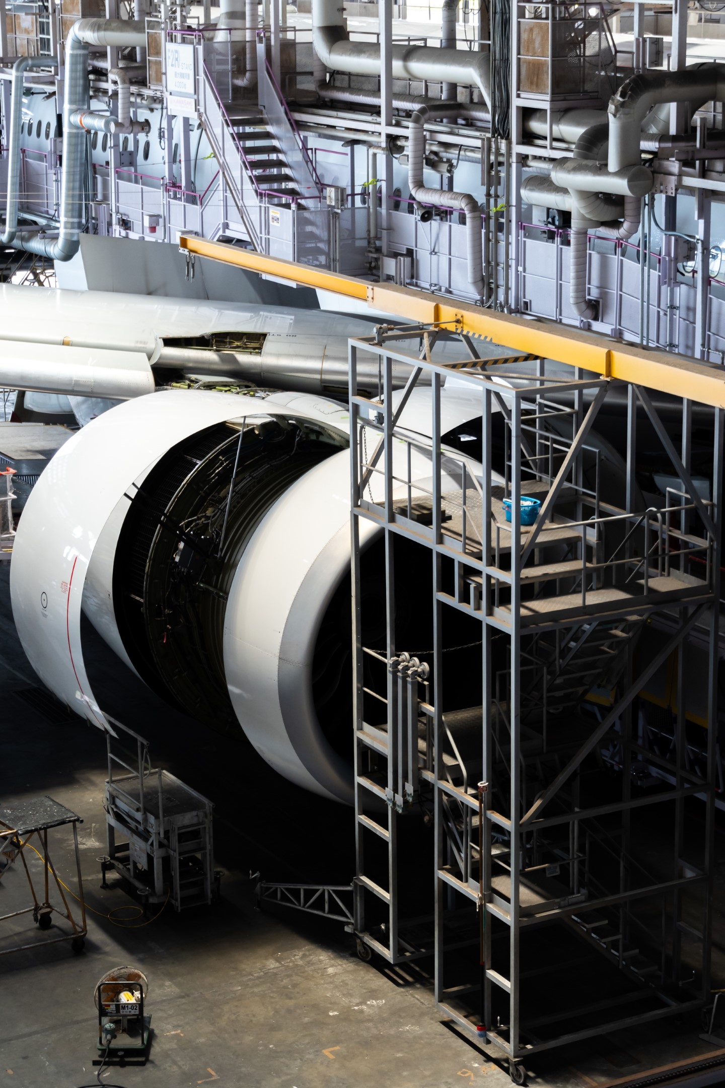 Once time is up for the first half then the party would be split into smaller groups where a member of staff would then bring you out to the two hangars. The website had made it clear that because this is a working maintenance hangar there would be no guarantees as to what would actually show up on the day (if you're very unlucky there might not be one at all!) - in my case there was a 777 at the first hangar which was encased completely with staging, and the only thing that I could see unhindered was one of its engines. On the other side there was a 737 being looked at at the tail, but the staging around meant I couldn't get a good angle for this.